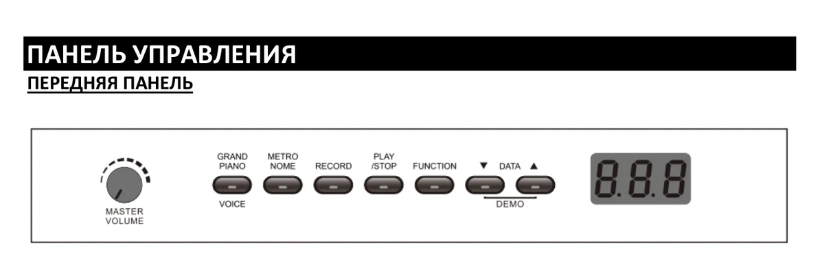Приборную панель хоть и скопировали с Korg LP-380, но кнопки могли бы сделать и получше. При нажатии они издают пластиковый щелчок. Хотя при этом “ сидят" они надежно и не залипают.