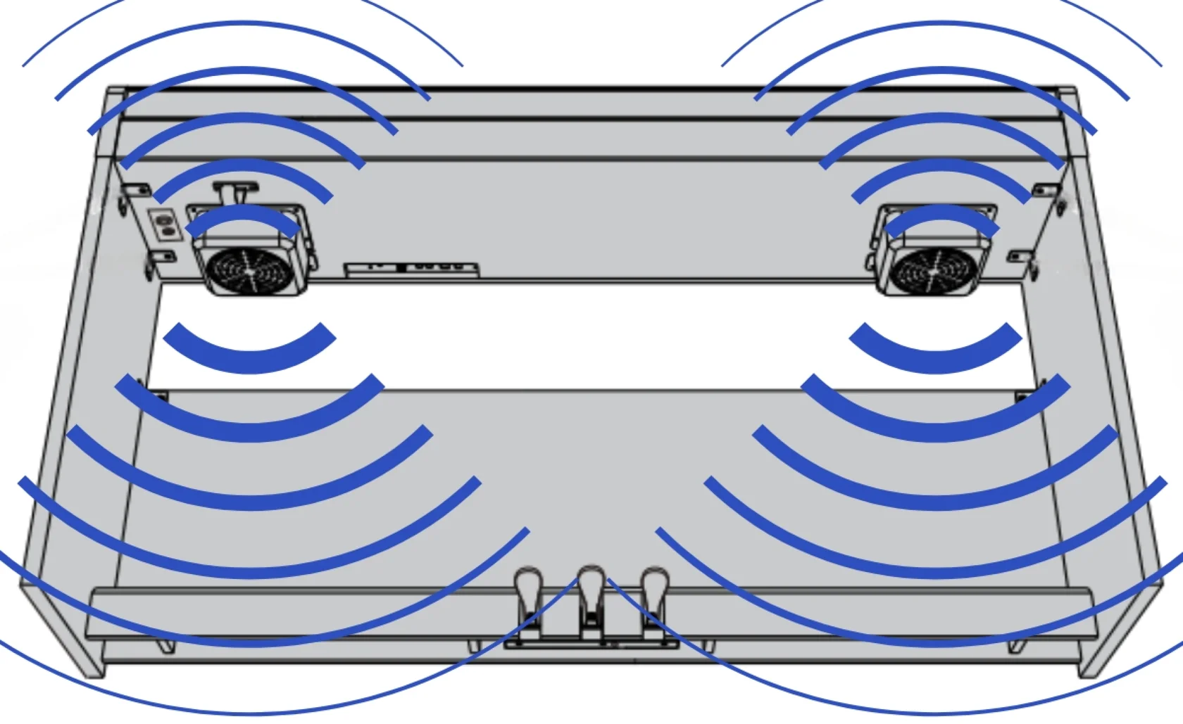 Акустическая система пианино состоит из двух динамиков мощностью 10 ватт каждый. Много это или мало? Для квартиры этого достаточно. Вам не нужно будет выкручивать ручку на полную громкость.