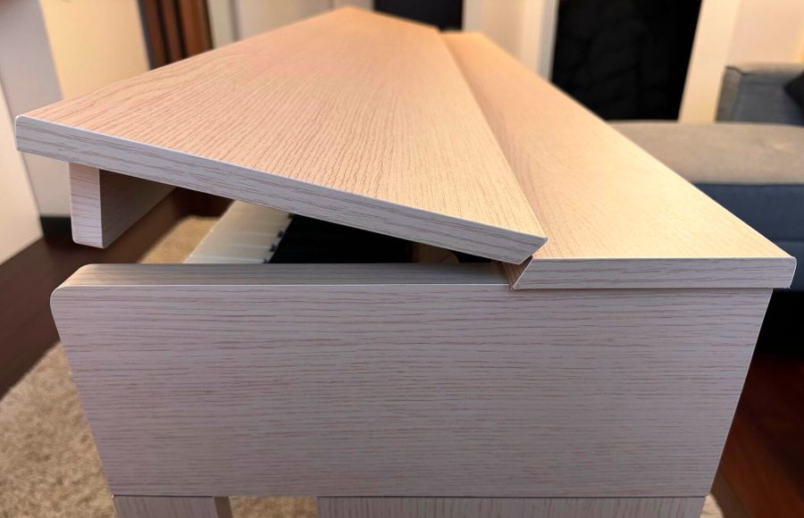 2. Выдвижные крышки делаются не из МДФ, а из тонкого пластика, стилизованного под дерево. Бывает так, что на ощупь она как картонная.
