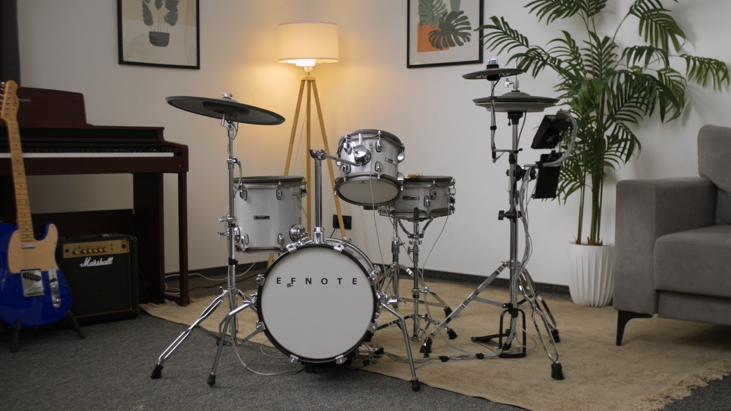 Электронная ударная установка для тех, кто любит играть в полную силу, но живёт в мире соседей, тонких стен и здравого смысла. EFNOTE EST-MINI Kit A+C решает эту боль красиво: по габаритам это компактный сет, а по ощущениям и отдаче он воспринимается как взрослый инструмент. В этом бюджете здесь ценят не количество функций, а качество игры, когда руки и ноги чувствуют инструмент, а не набор резиновых кружков на трубках. И да, места она занимает мало, поэтому спокойно живёт дома, в маленькой студии или в комнате, где каждый метр на счету.