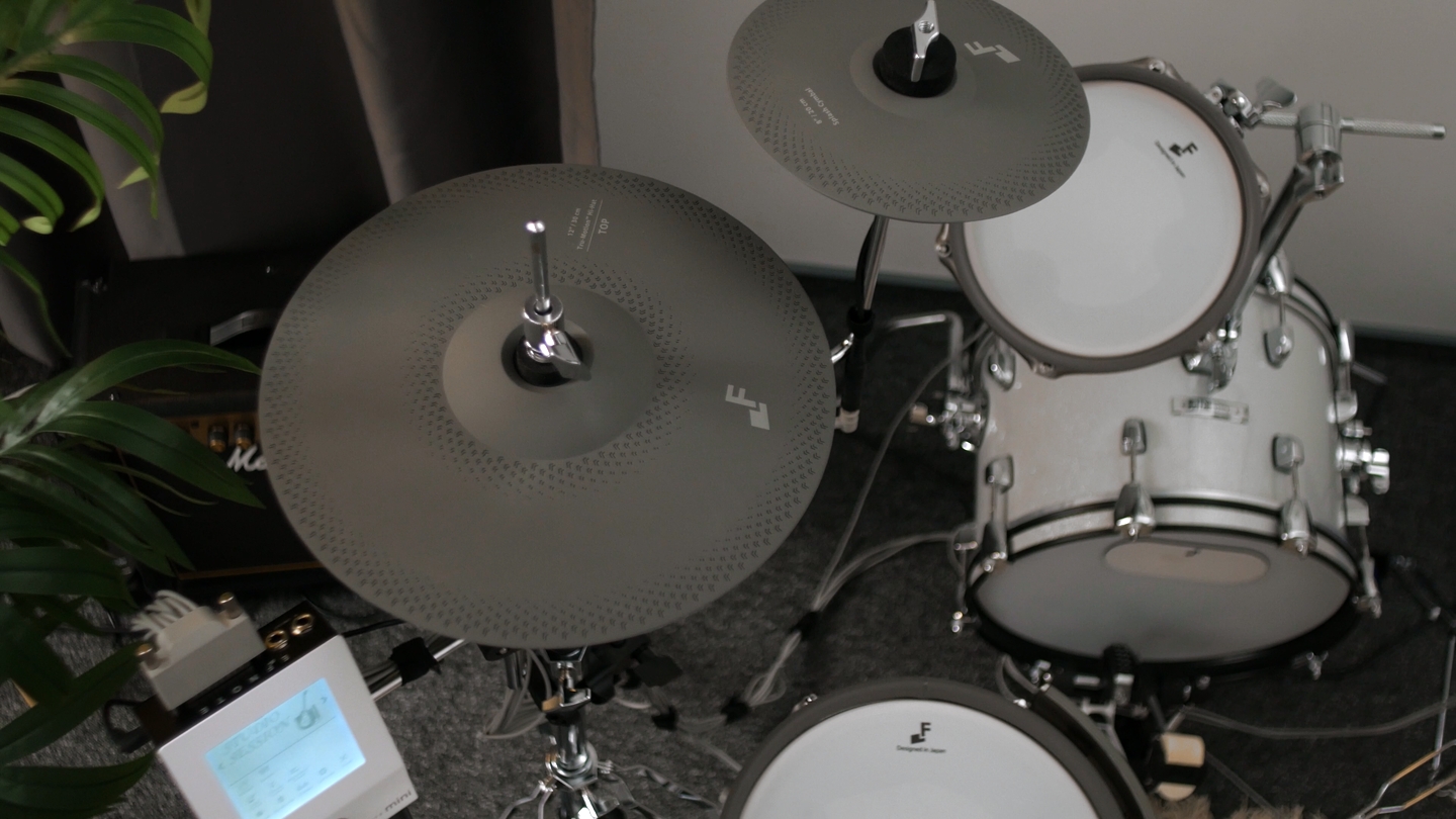 - · Хай-хэт 12" на механической стойке, Tru-Motion™ • тарелки с глушением, крэш 8" • райд 16", 3 зоны, все 360°