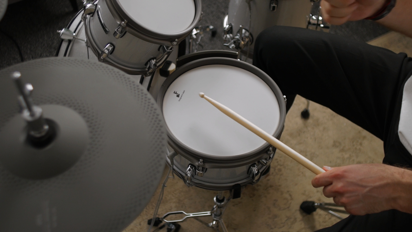Слушаем ключевые звуки по слоям и в миксе, отдельно уделяем внимание хай-хету в быстрых срабатываниях, атаке малого и плотности бочки. И да, шумомер тоже будет, потому что "мини" не всегда значит "тише".