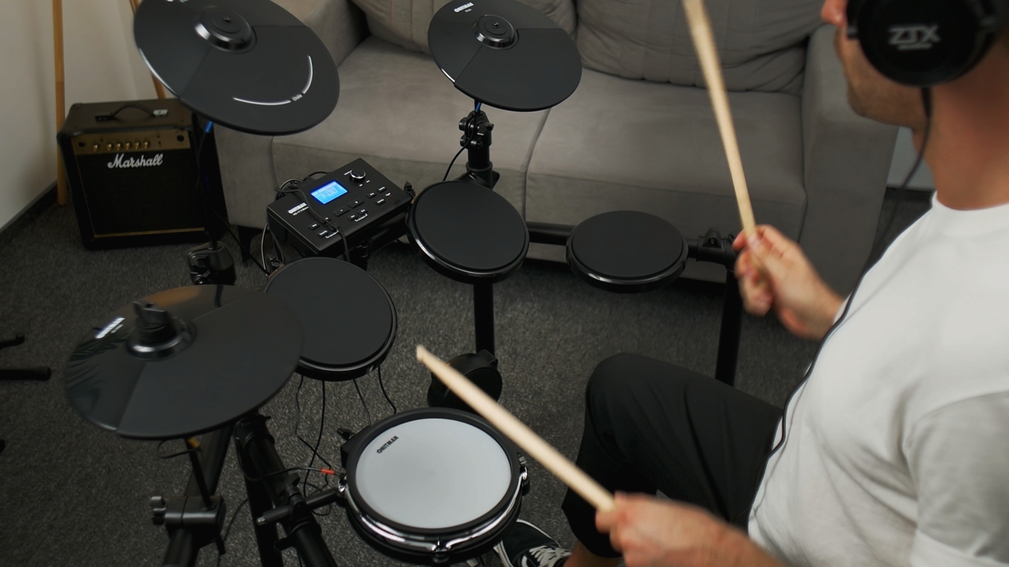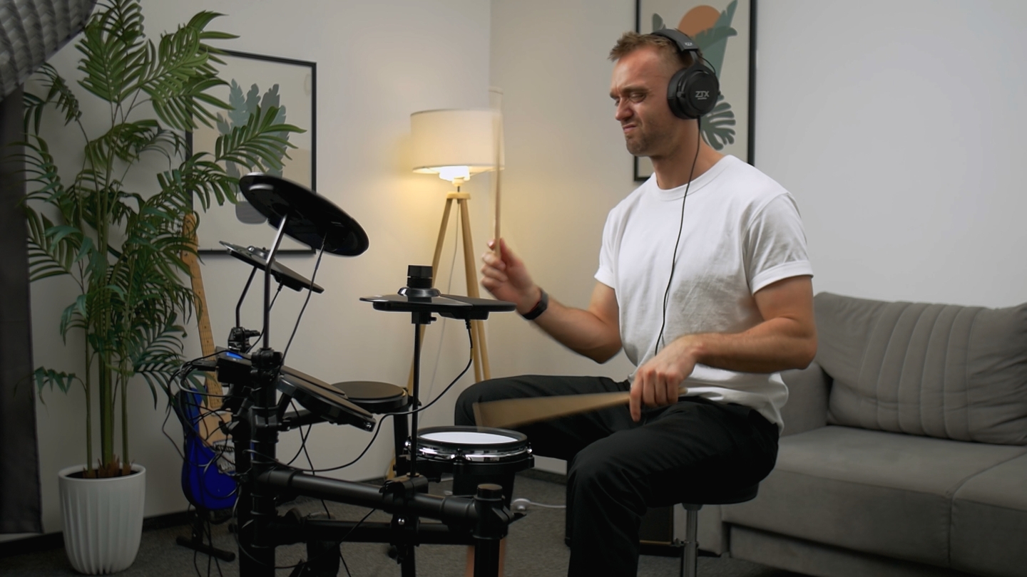 Проверяем установку в разных жанрах и темпах, чтобы понять, как она держит динамику и "вкус" ударов. Плюс замер шумомером для понимания домашней громкости.