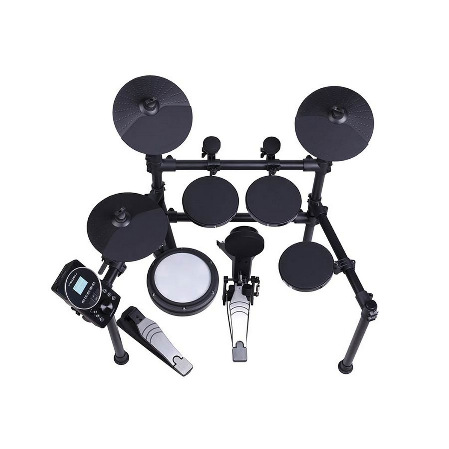 Компактная установка для дома и регулярных занятий, где важны тихий формат и быстрый старт без лишней возни. Электронные барабаны Medeli MZ520 попадают в бюджетный сегмент, но при этом дают полноценный набор пэдов и тарелок. Здесь есть сетчатый малый на 2 зоны, кик-пэд с поддержкой кардана и дополнительные мини-пэды для расширения сетапа. Поставили в угол комнаты, подключили наушники и можно спокойно заниматься.