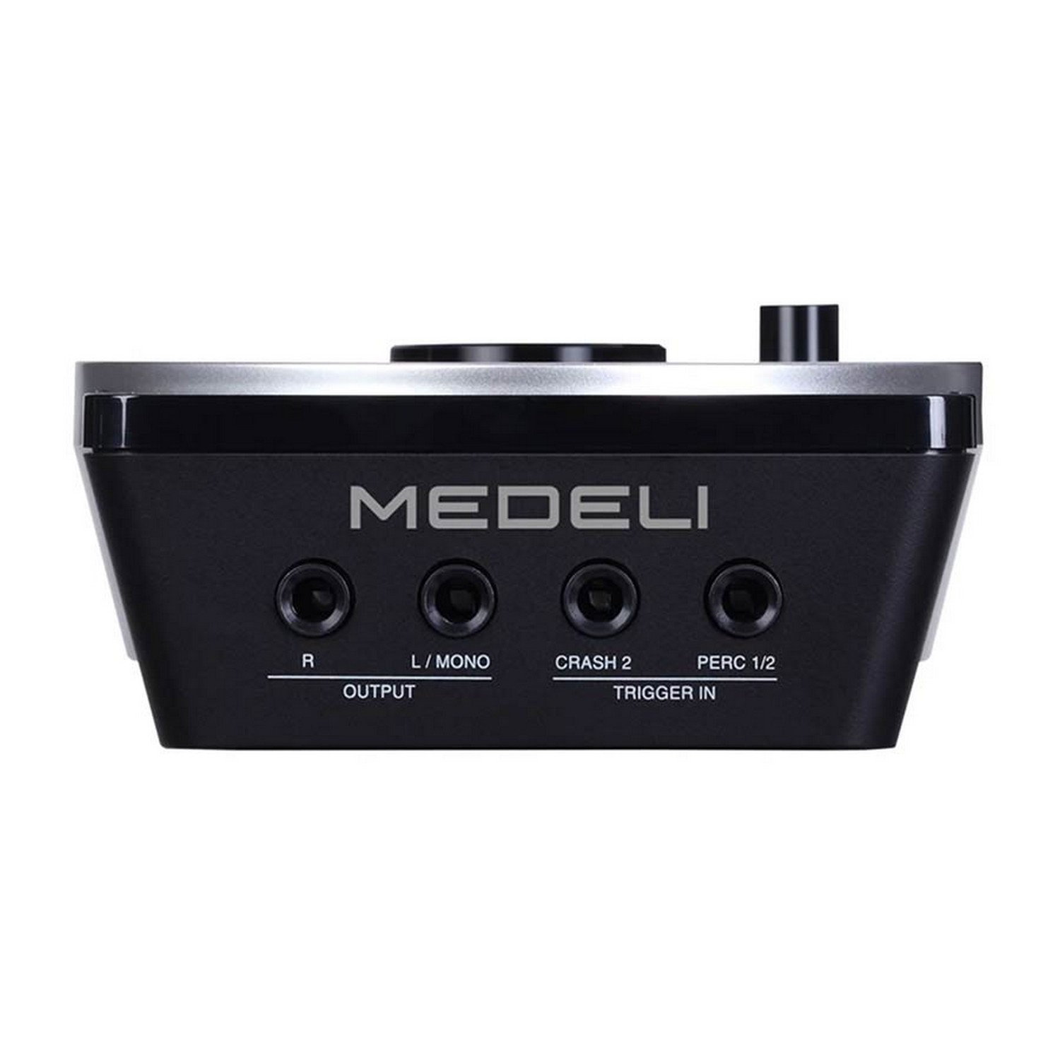- · Комплектация: пэды, тарелки, педаль бас-барабана, педаль хай-хета, модуль, рама, коммутация, блок питания, инструкция