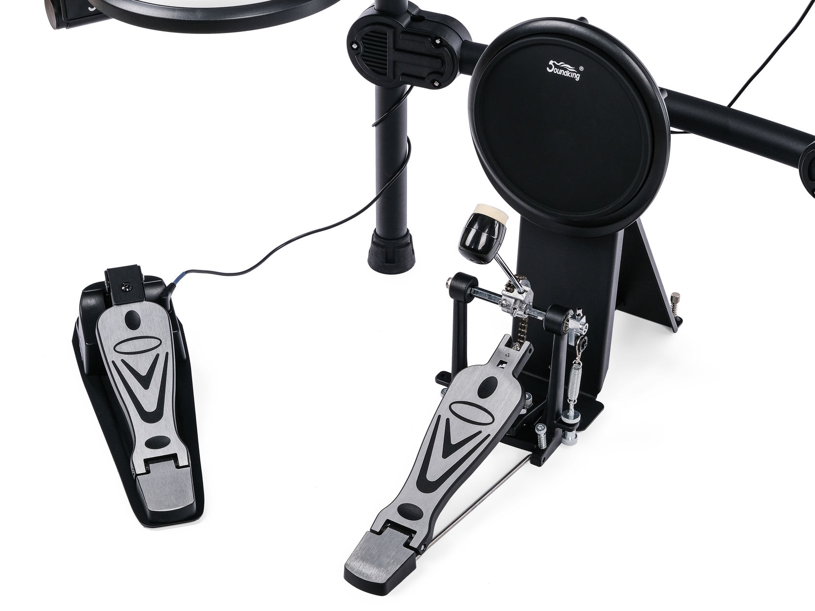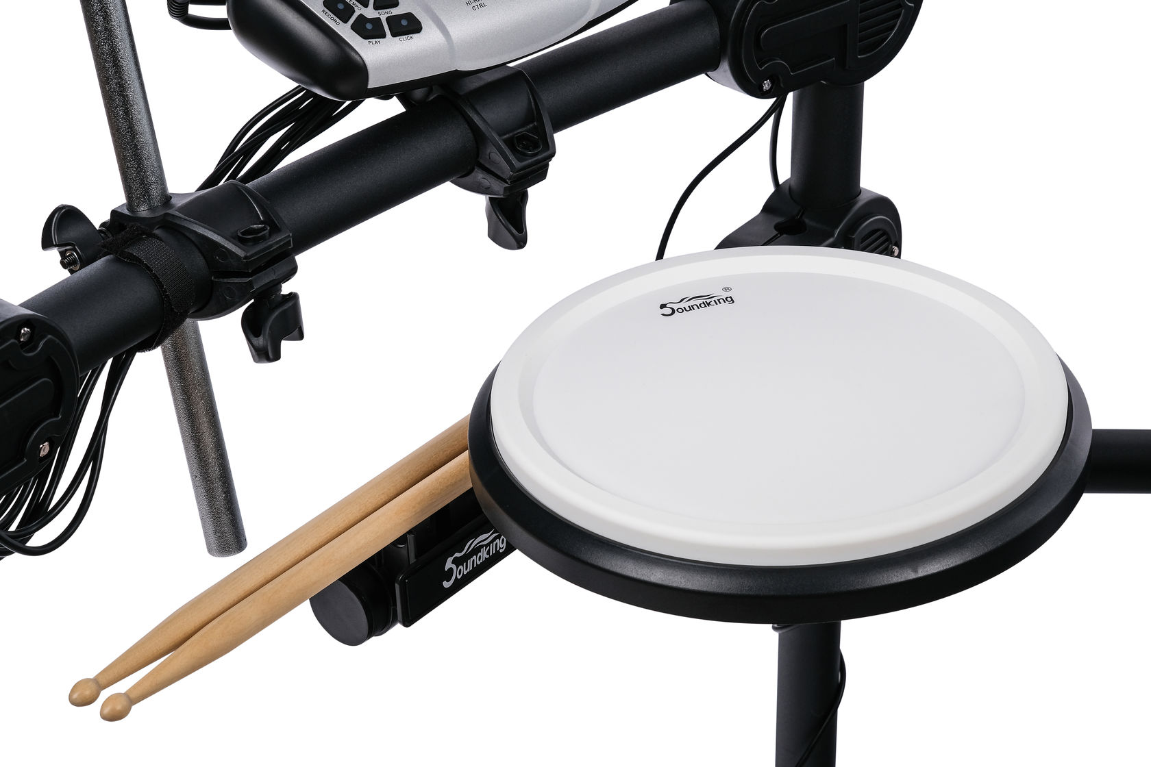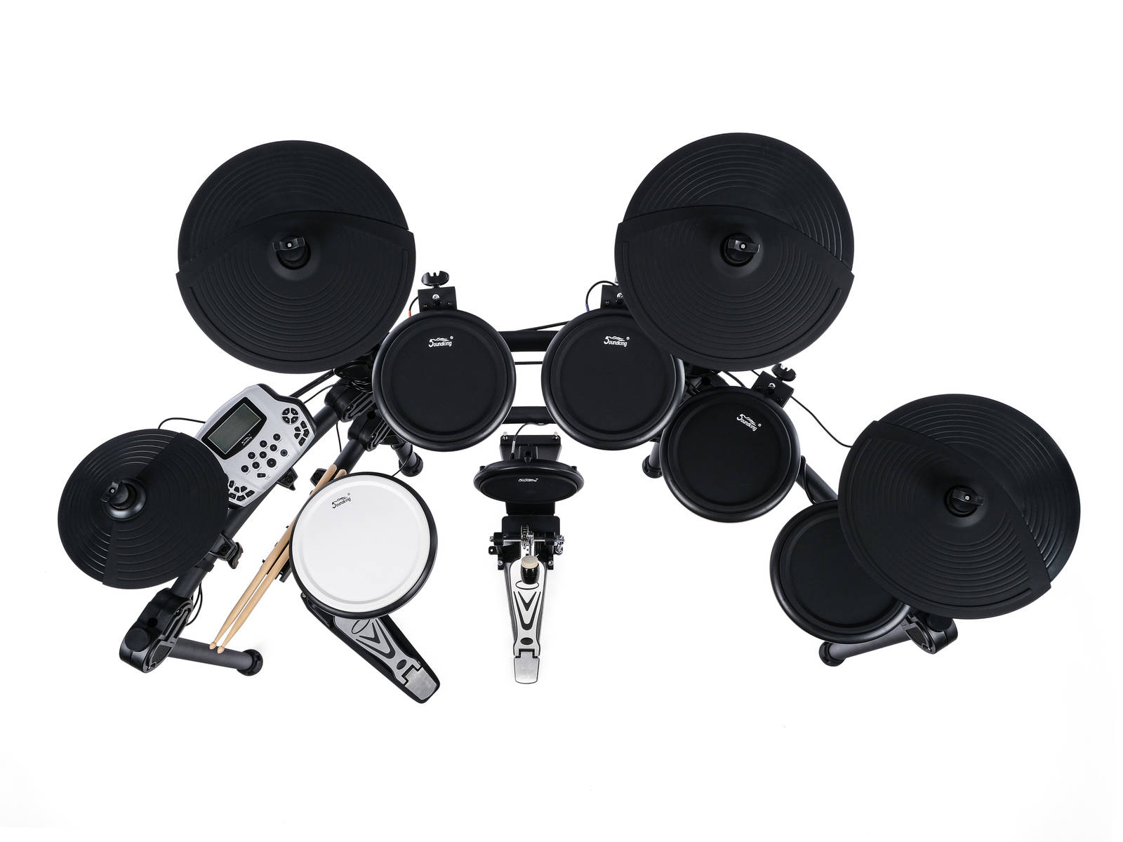 Установка из доступного сегмента с расширенным по меркам класса набором пэдов и тарелок. Электронные барабаны Soundking SD230 подойдут для домашних занятий, регулярной практики и первого полноценного комплекта без совсем базовой урезанной конфигурации. Здесь 4 тома, отдельный 10-дюймовый малый барабан, 2 крэша, райд и 8-дюймовый кик-пэд с поддержкой кардана, а модуль даёт 41 набор ударных и более 450 звуков. В Музрум эту модель можно подобрать под ваши задачи с нормальной консультацией перед покупкой.