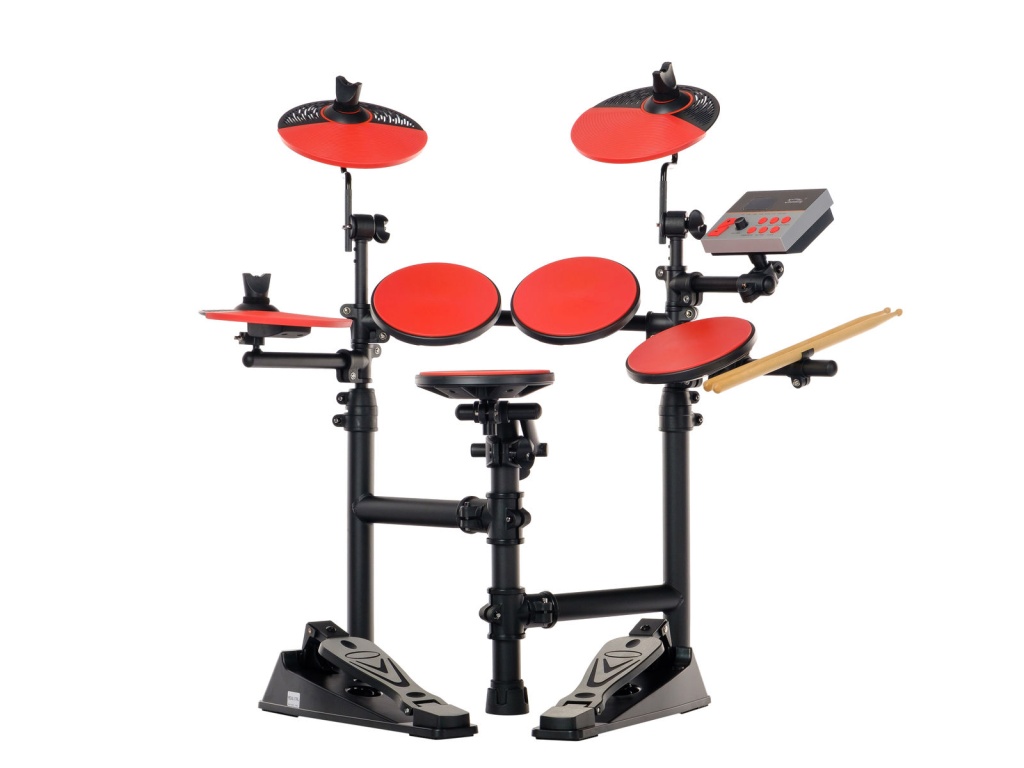 Это компактная установка начального уровня для первых занятий и домашней практики. Электронные барабаны Soundking SD50 собраны вокруг модуля SD50 и включают базовый набор пэдов с педалью-контроллером бас-барабана, педалью-контроллером хай-хэта и компактными 7-8-дюймовыми элементами. В бюджетном сегменте это простой вариант для тех, кому нужен недорогой комплект с метрономом, USB-MIDI и подключением наушников.