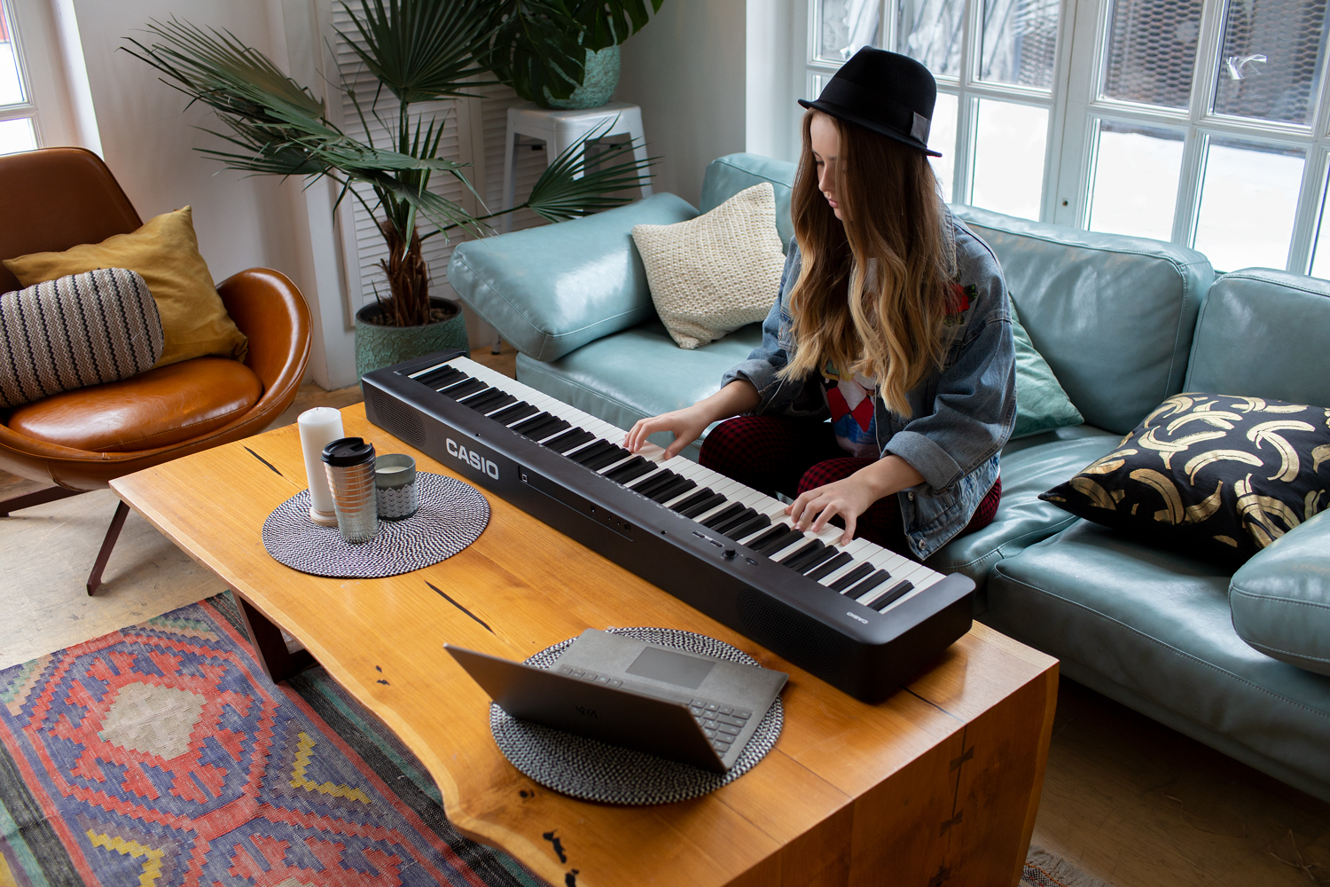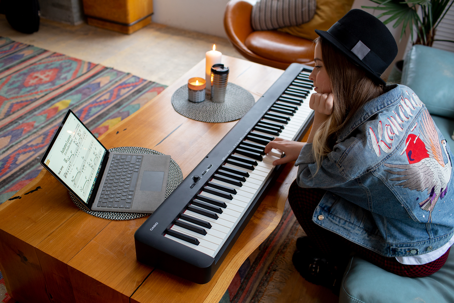 Очень компактное и лёгкое пианино для квартиры, дачи или небольшой студии. В Музрум мы даём Casio CDP-S100 BK в аренду за несколько тысяч рублей в месяц, так что можно спокойно начать заниматься без покупки собственного инструмента. Полноценные 88 клавиш с молоточковой механикой дают нормальное фортепианное ощущение под пальцами, а не синтезаторное. Японский бренд, надёжный рабочий инструмент для регулярной учебы и репетиций. Приехало, поставили, подключили – и можно играть.