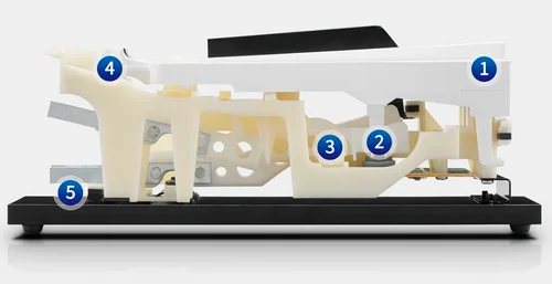 В KDP 75 представили следующее поколение, Responsive Hammer Compact 2. В ней улучшили баланс рычага и поменяли сенсоры, их тут 2 шт. И вроде как она стала более отзывчивой. Но честно говоря, играя, я не почувствовал разницы. Она мне нравилась в KDP 70, и она по прежнему мне нравится в KDP 75 и 120.