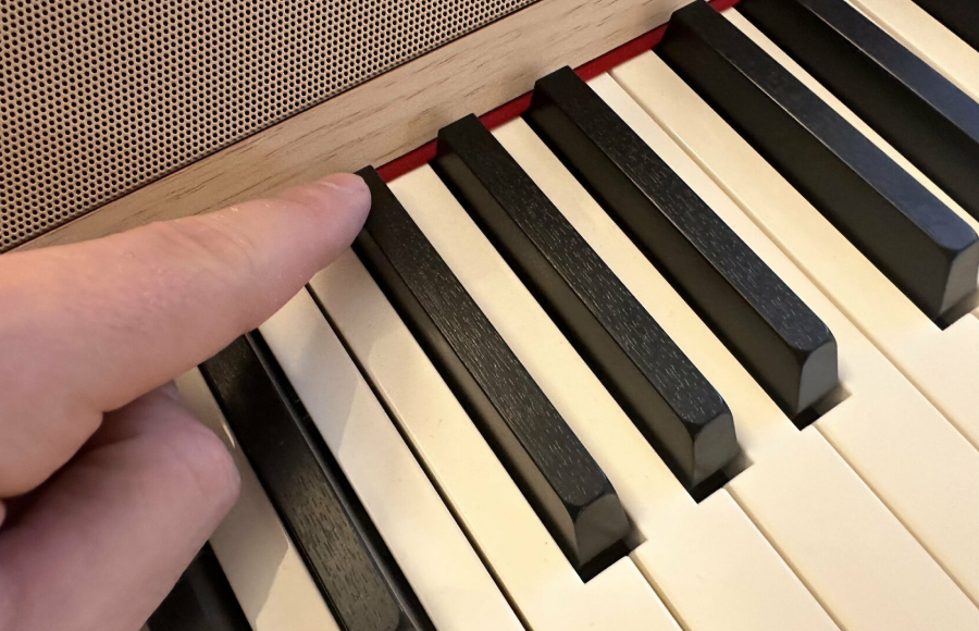 На клавише толстый слой специального покрытия - я не знаю что за материал, но на ощупь очень похож на покрытие клавиши настоящего пианино, напоминает дорогое стекло.