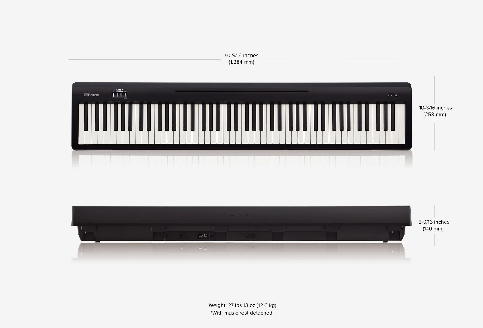 Roland FP-10 это стартовая модель серии, но в ней стоит точно такой же звуковой движок, точно такие же фортепианные семплы и точно такая же 3х сенсорная клавиатура как у старших представителей серии.