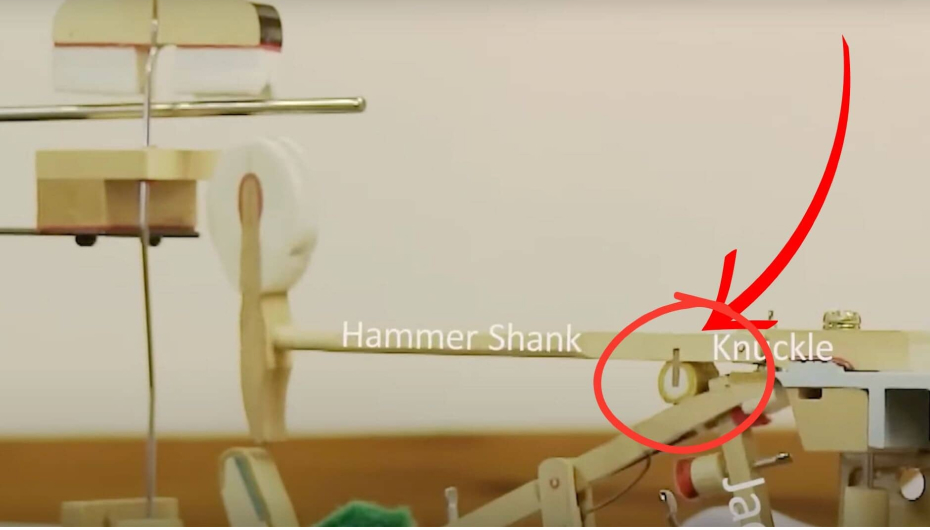 Это когда молоточек, после удара по струне, возвращается в исходное положение. При этом, срабатывает возвратный механизм, который и вызывает характерные тактильные ощущения под пальцами. Как бы ощущение легкого бугорка.