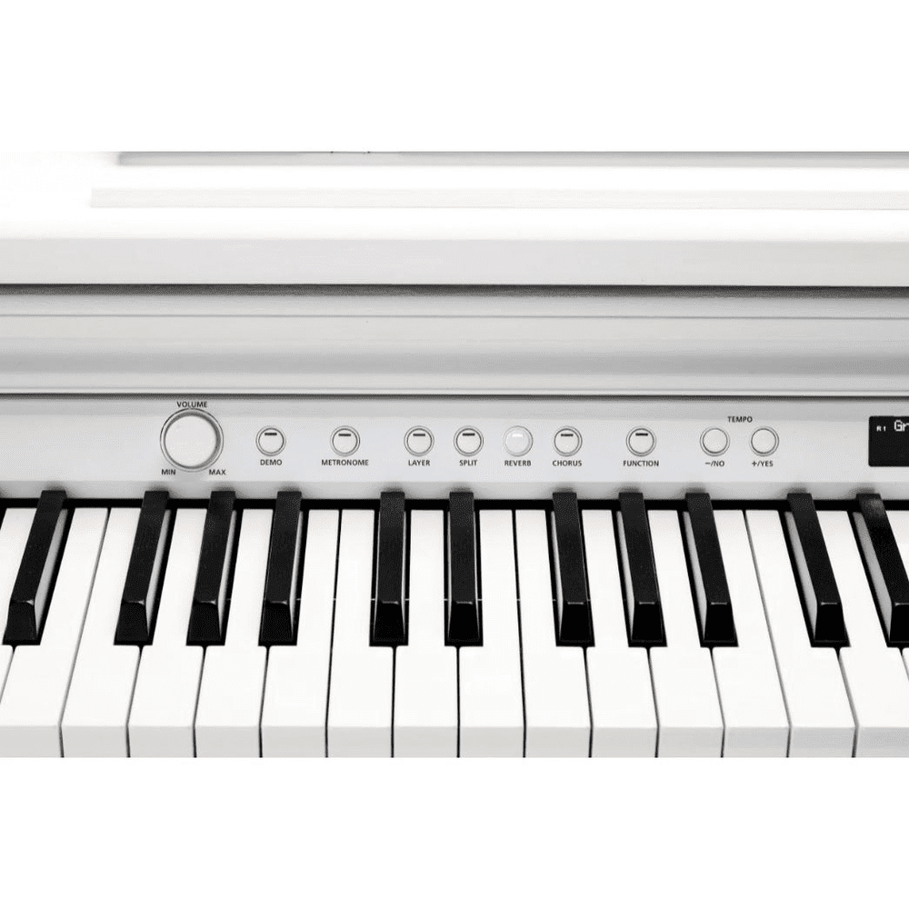 - · Режим Дуэт, разделение клавиатуры, наложение тембров, транспонирование, метроном, Bluetooth, USB-MIDI (USB to Host), Line Out, Line In, два выхода на наушники 6,3 мм