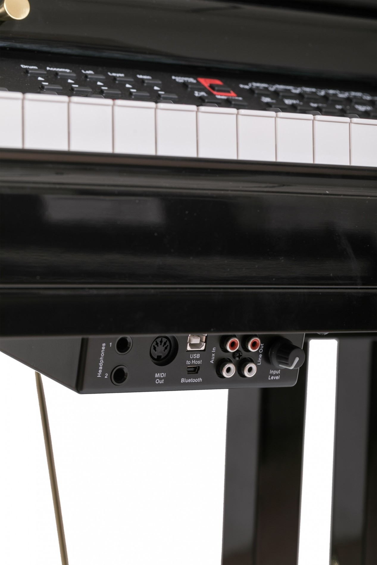 - · Наложение тембров, разделение клавиатуры, автоаккомпанемент, режим Duet, транспонирование, метроном, Bluetooth, USB-MIDI, линейный вход и линейный выход, 2 выхода на наушники, тройная педаль