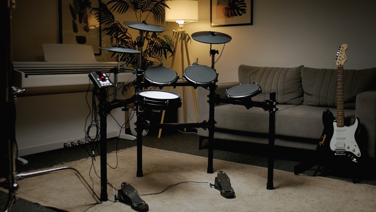 - · Комплектация: рама, пэды, тарелки, педаль-контроллер бас-барабана и хай-хета, модуль, кабели и коммутация, блок питания, инструкция