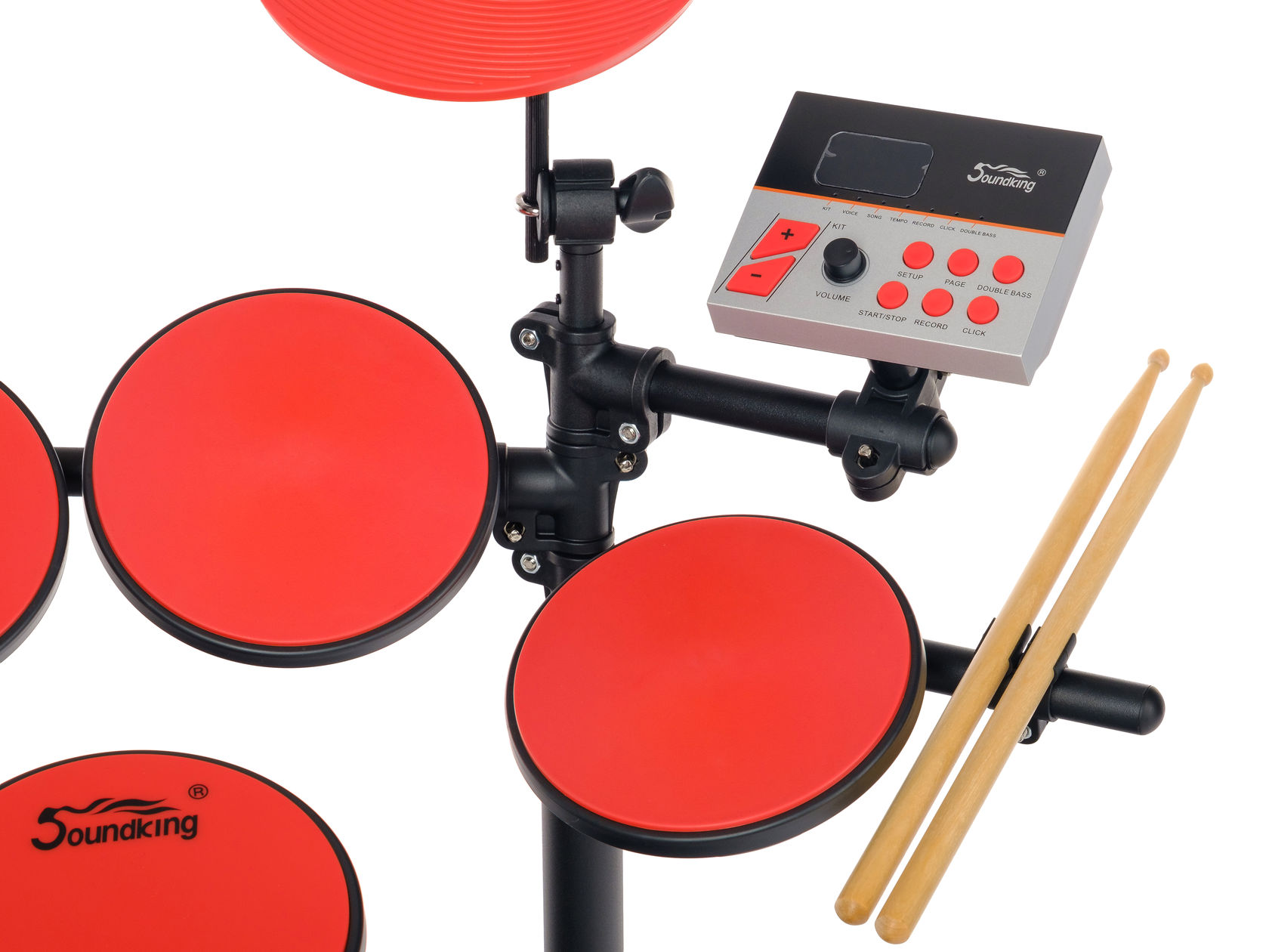 Это компактная установка начального уровня для первых занятий и домашней практики. Электронные барабаны Soundking SD50 собраны вокруг модуля SD50 и включают базовый набор пэдов с педалью-контроллером бас-барабана, педалью-контроллером хай-хэта и компактными 7-8-дюймовыми элементами. В бюджетном сегменте это простой вариант для тех, кому нужен недорогой комплект с метрономом, USB-MIDI и подключением наушников.