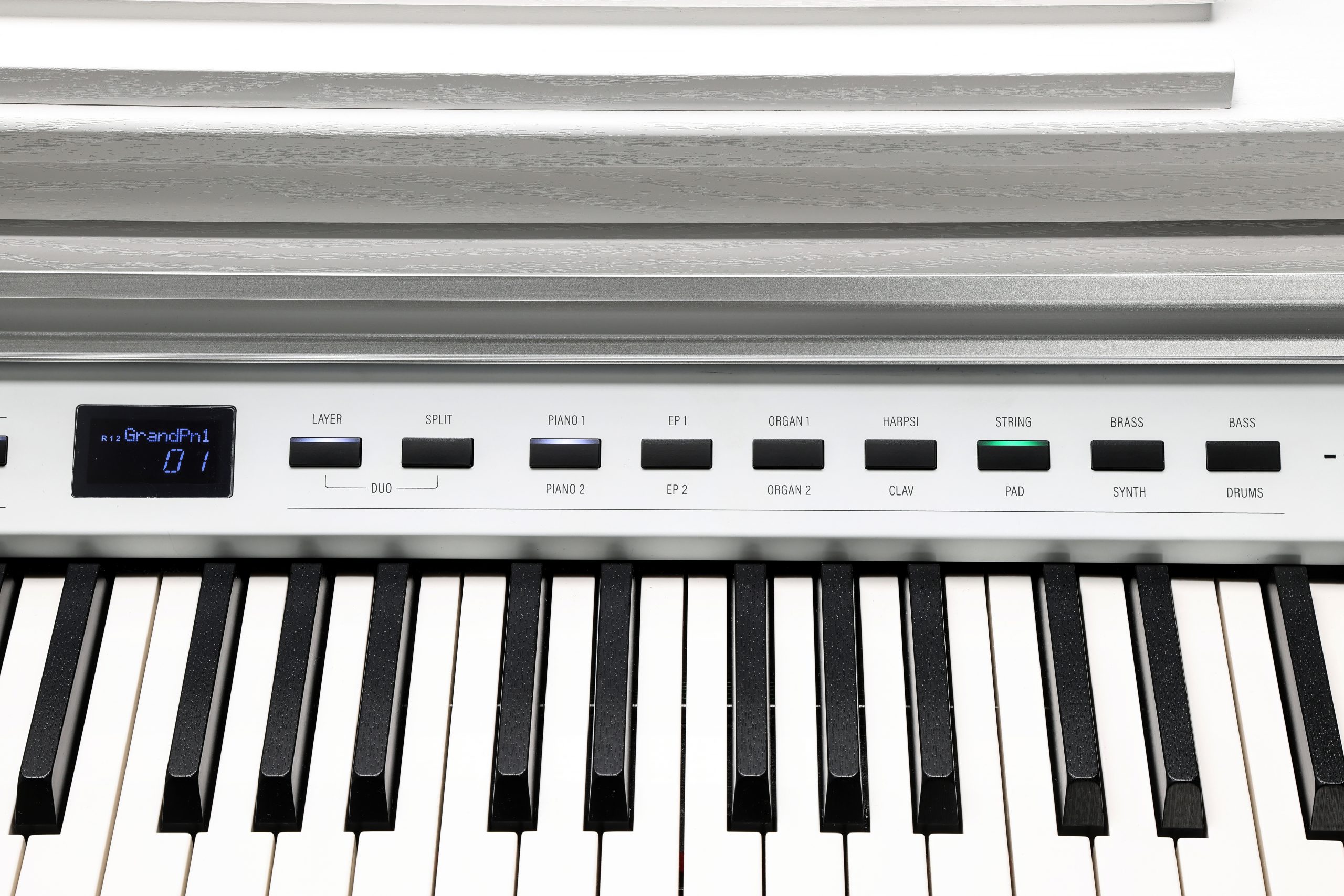- · Режим Дуэт, разделение клавиатуры, наложение тембров, транспонирование, метроном, Bluetooth, USB-MIDI (USB to Host, USB to Device), Line Out, Line In, два выхода на наушники 6,3 мм